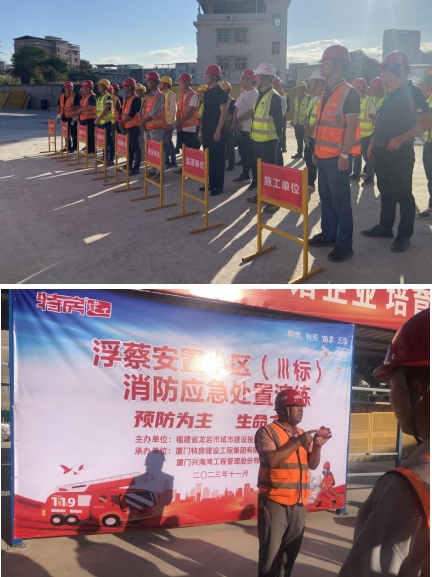 11月9日是第32個(gè)全國消防日,為全面普及消防安全知識,進(jìn)一步提高在建項(xiàng)目管理人員及現(xiàn)場工人的消防安全自防自救的處置能力,預(yù)防和減少火災(zāi)事故的發(fā)生當(dāng)天,市政集團(tuán)以“11·9”消防宣傳日為契機(jī),深入浮蔡安置小區(qū)Ⅲ標(biāo)項(xiàng)目開展11·9”消防安全宣傳日活動(dòng),圍繞主題開展了消防應(yīng)急處置演練活動(dòng),公司副總經(jīng)理修海金、質(zhì)安部及施工、監(jiān)理單位共計(jì)五十余人參加活動(dòng)。